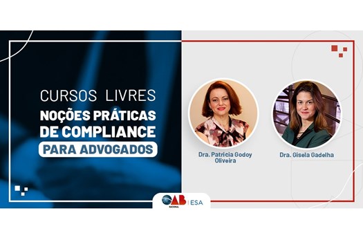 A ESA Nacional e a OAB Nacional lançam o curso “Noções práticas de Compliance para Advogados”. O curso passa uma visão macro sobre a área e traz as origens do Compliance e a sua estreita relação com o combate à corrupção no Brasil. O curso terá carga horária de 5h30 e é dirigido a advogados e estagiários inscritos na OAB, bacharéis em direito e profissionais graduados de outras áreas. O aluno terá o prazo máximo e não prorrogável de 90 dias para assistir às aulas, contados a partir da efetivação da matrícula.
