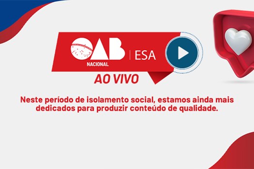 A Escola Superior de Advocacia Nacional (ESA Nacional) divulgou a realização de mais lives que serão promovidas no âmbito do projeto “ESA ao vivo”. As transmissões serão realizadas sempre pelo Instagram oficial da ESA Nacional (@esanacional), com a presença de convidados especiais, numa exposição que se assemelha a uma breve conversa, mas com o debate de temas relevantes na atual conjuntura.